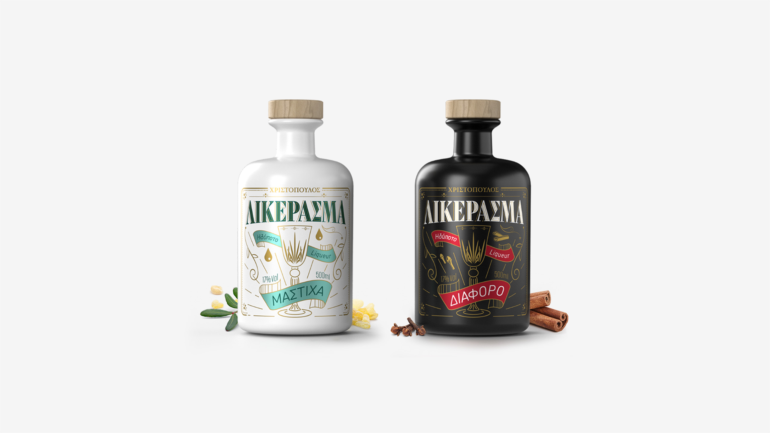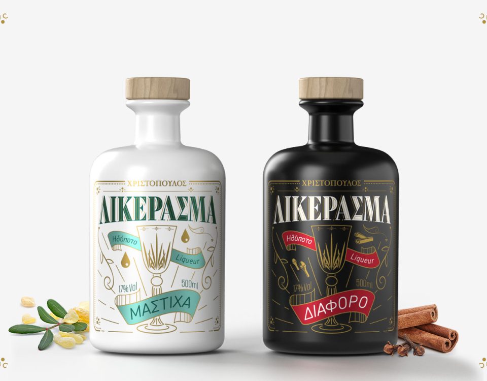 Packaging design for the liqueurs distilled and bottled by Christopoulos Distillery in Kalamata, Greece.- Date