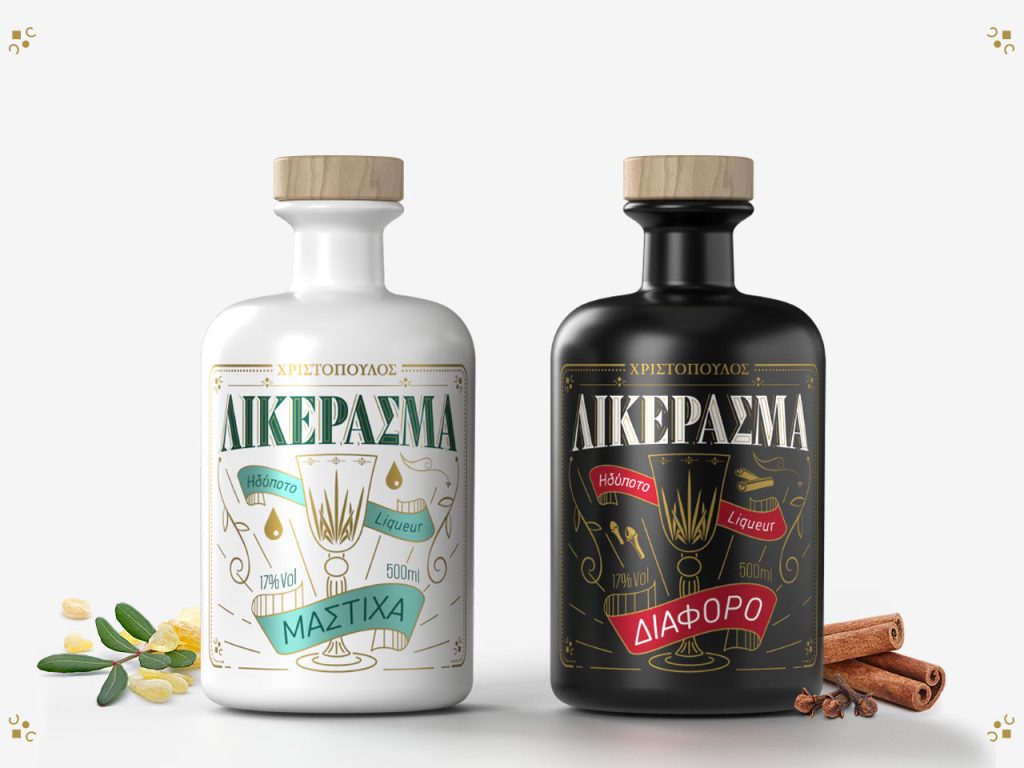 Packaging design for the liqueurs distilled and bottled by Christopoulos Distillery in Kalamata, Greece.- Date